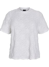 Blouse van rekbaar en licht transparant materiaal met een mooie textuur en een driedimensionaal bloemenpatroon. De blouse heeft korte mouwen, een ronde hals en een normale pasvorm.