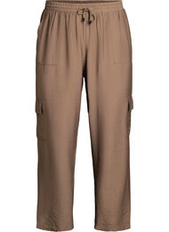 Cargobroek met zijzakken, een hoge taille met een elastische tailleband en verstelbare trekkoorden, en een ontspannen pasvorm met een straight silhouet van heup tot enkel. Deze broek bevat 87% LENZING™ ECOVERO™ Viscose-vezels, die natuurlijke zachtheid en soepele beweging ondersteunen.