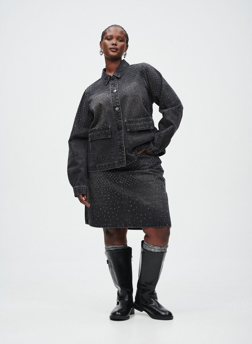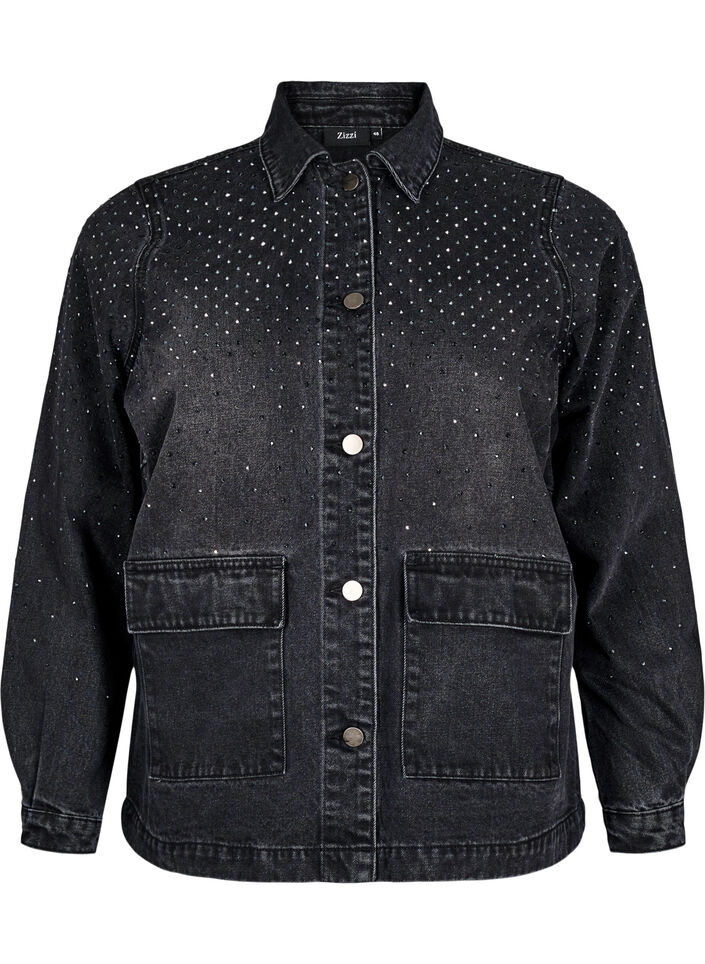 Denimjas met rhinestones en grote zakken aan de voorkant