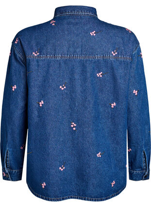 Denim overhemd van 100 % katoen met borstzakje en delicaat geborduurde bloemen. Het overhemd heeft een kraag, knoopsluiting over de hele lengte en een losse pasvorm.