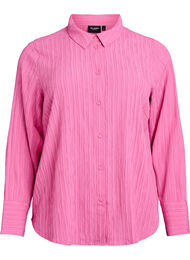 Licht en comfortabel shirt in een zachte viscose stof met een licht gekreukte, gestreepte textuur. Het shirt heeft een regular-fit, klassieke kraag, knoopsluiting aan de voorkant en lange mouwen met wijde manchetten voor een stijlvolle uitstraling.