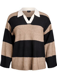 Casual gebreide blouse in een zachte en lichte stof met 64% gerecyclede vezels en 6% wol, wat zorgt voor een warme en comfortabele feel. De stijl heeft een klassieke kraag met een V-hals, lange mouwen en een losse pasvorm met geribde randen bij de mouwen en zoom.