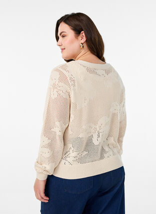 Gebreide cardigan met opengewerkt patroon en strikkoordjes
