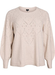 Gebreide top met opengewerkt patroon en ballonnen mouwen