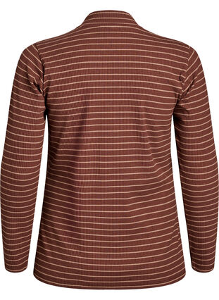 Tijdloze basic blouse in een zachte en rekbare katoenen jersey kwaliteit met geribde textuur en gestreept design. De stijl heeft een hoge hals, lange mouwen en een comfortabele pasvorm met een lichte A-lijn vorm. Een veelzijdig stuk dat perfect alleen gedragen kan worden of als laagje onder een breisel of vest.