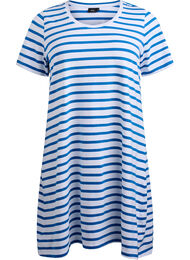 Comfortabele jersey jurk met een klassiek gestreept dessin en een losse pasvorm met een a-vorm. De jurk is gemaakt van een zachte katoenkwaliteit en heeft korte mouwen en een ronde hals.