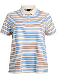 Kortemouwen polo shirt in een zachte en rekbare katoenmix met een tijdloos gestreept design. Het polo shirt heeft een kraag, knoopsluiting en een comfortabele pasvorm.