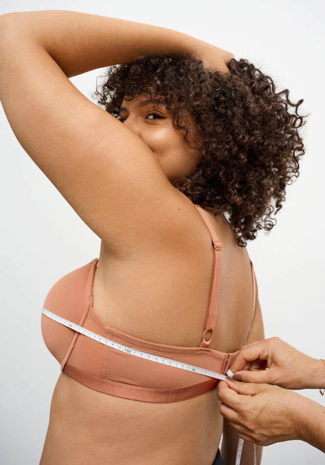 Om de borstomvang te vinden, meet je op de volste plaats. Het meetlint moet horizontaal en dicht bij het lichaam zijn. Als je een beha draagt terwijl je jezelf aan het meten bent, zorg er dan voor dat deze niet te strak zit, zodat de metingen nauwkeurig worden.