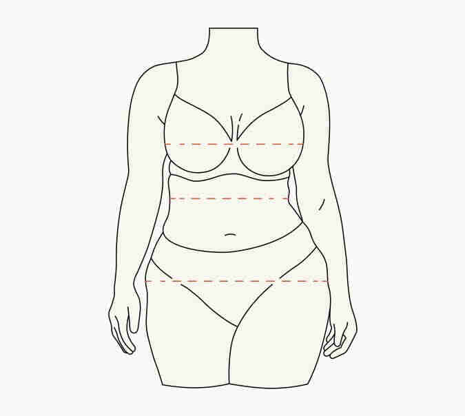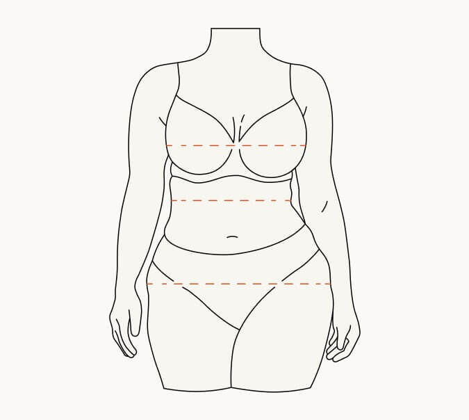 Om de juiste maat te vinden, kun je het beste beginnen met je eigen maten. In dat verband is het een goede vuistregel dat je bij het vinden van je maten een vinger tussen het lichaam en het meetlint houdt. Zo zorg je dat de kleding lekker zit zonder strak te trekken en zoals je kunt zien in onderstaande afbeelding, werken we vanuit drie meetpunten.