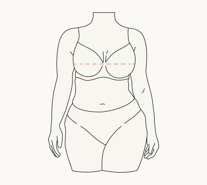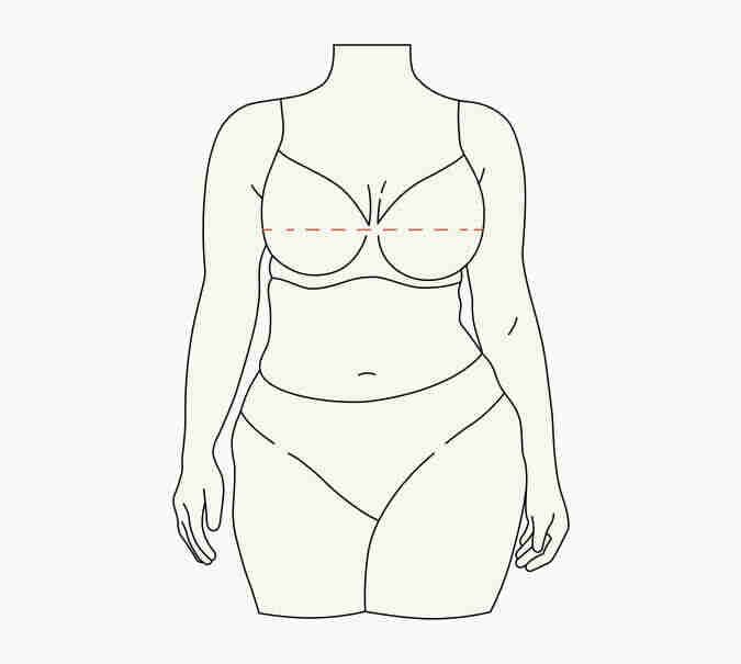 Om de borstomvang te vinden, meet je op de volste plaats. Het meetlint moet horizontaal en dicht bij het lichaam zijn. Als je een beha draagt terwijl je jezelf aan het meten bent, zorg er dan voor dat deze niet te strak zit, zodat de metingen nauwkeurig worden.