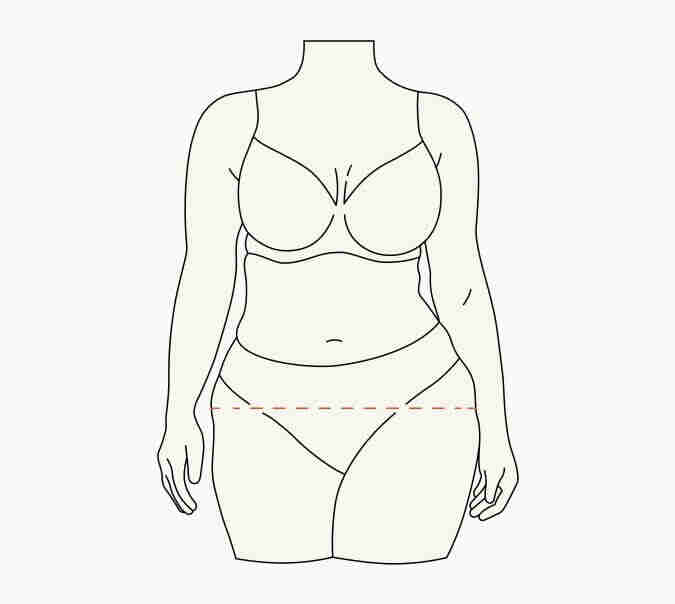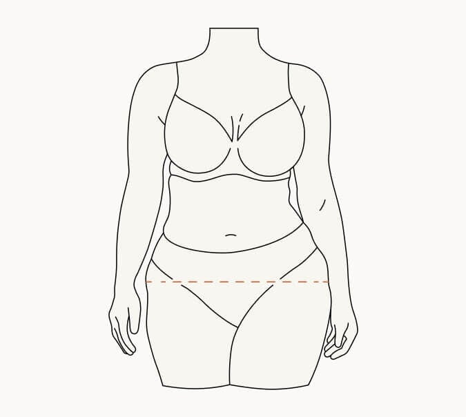 Je vindt de heupomvang door op de breedste plaats rond de heupen te meten. Als je ervoor zorgt dat het meetlint horizontaal en dicht bij het lichaam ligt, krijg je de meest nauwkeurige meting. We raden aan om direct op het lichaam te meten zonder kleding aan.