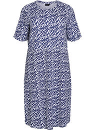 Zachte en comfortabele jersey jurk van een elastische viscose stof met een all-over print. De jurk heeft een midi-lengte, korte mouwen, een ronde halslijn en een normale pasvorm met een vaste strikriem aan de taille. Deze jurk bevat 95% LENZING™ ECOVERO™ Viscose vezels, die natuurlijke zachtheid en drapering ondersteunen.