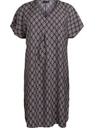 Elegante jurk in een tijdloos ontwerp met korte mouwen en een v-hals. De jurk is gemaakt van een zachte viscose stof met een lichte textuur en heeft een relaxte pasvorm met zijsplitten.