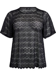Kantblouse met korte mouwen en gegolfde zoom
