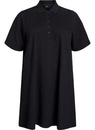 Korte polojurk gemaakt van zachte, elastische katoenen jersey. De jurk heeft een klassieke polokraag, een korte knoopsluiting, korte mouwen en een comfortabele A-lijn.