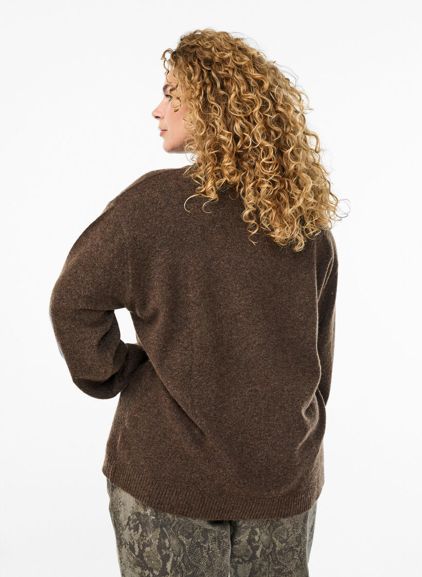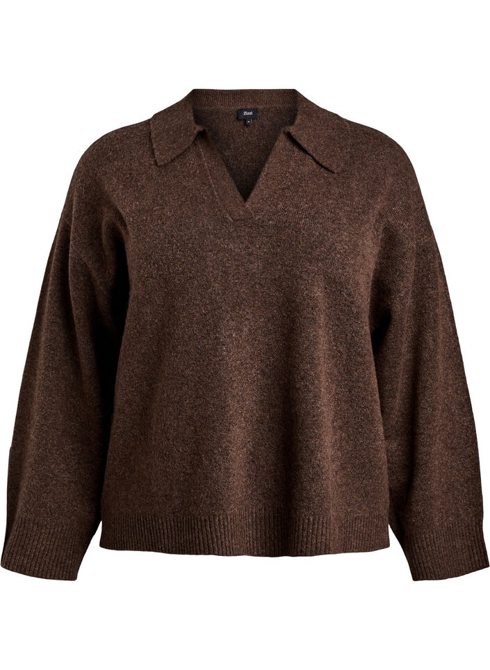 Gebreide blouse met kraag en V-hals, Bruin, Model