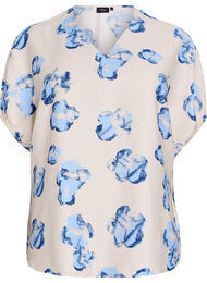 Blouse met een prachtige all-over print, losse pasvorm, V-hals en korte mouwen met elastische boorden die een licht gerimpeld effect creëren. Deze blouse bevat 92% LENZING™ ECOVERO™ viscosevezels, die natuurlijke zachtheid en soepelheid ondersteunen.