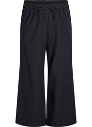 Losse broek van zachte katoenstof met zakken aan de zijkant. De broek heeft een hoge taille met een elastische tailleband en trekkoord en heeft een comfortabele pasvorm met brede broekspijpen.