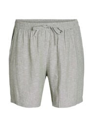 Losse en comfortabele korte broek met zijzakken en een hoge taille met een elastische tailleband en trekkoord. De korte broek is gemaakt van een zachte en ademende stofmix van linnen en viscose, waardoor ze ideaal zijn voor warmere dagen.