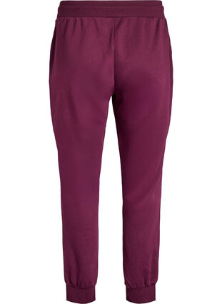 Losse en comfortabele trainingsbroek met elastiek en trekkoord in de taille. De broek heeft zakken aan de zijkanten en een decoratieve rib afwerking bij de enkels.