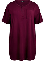 Zacht en comfortabel nachthemd met een losse en ontspannen pasvorm, gemaakt van een rekbare viscosestof. Het nachthemd heeft korte mouwen, een ronde halslijn met een subtiel knoopdetail en een decoratief borstzakje.