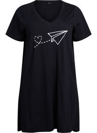Comfortabele nachtjapon met V-hals, korte mouwen en een ruime, soepele pasvorm met A-lijn. De nachtjapon is gemaakt van 100% biologisch katoen en heeft een eenvoudig patroon.