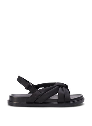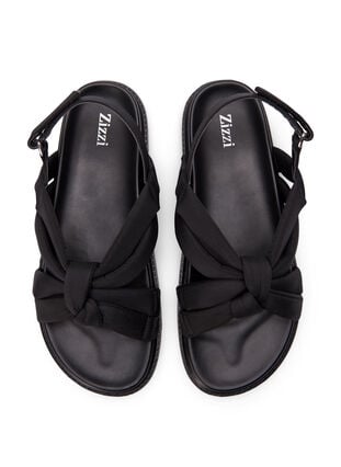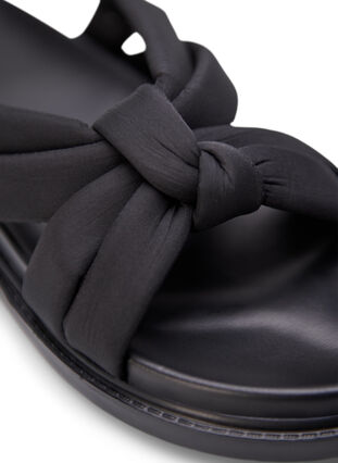 Sandaal met knoopdetail en een wide fit. De sandaal is ontworpen met een klittenbandsluiting aan de hiel en elastische panelen aan de binnenkant, die zorgen voor een flexibele pasvorm die zich aanpast aan jouw voet voor optimaal comfort en ondersteuning.