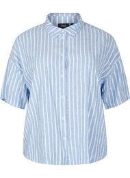 Shirt met kraag, doorknoopsluiting, korte mouwen en een losse pasvorm. Het shirt is gemaakt van linnen en viscose, wat zorgt voor een lichte structuur en natuurlijke ademendheid.