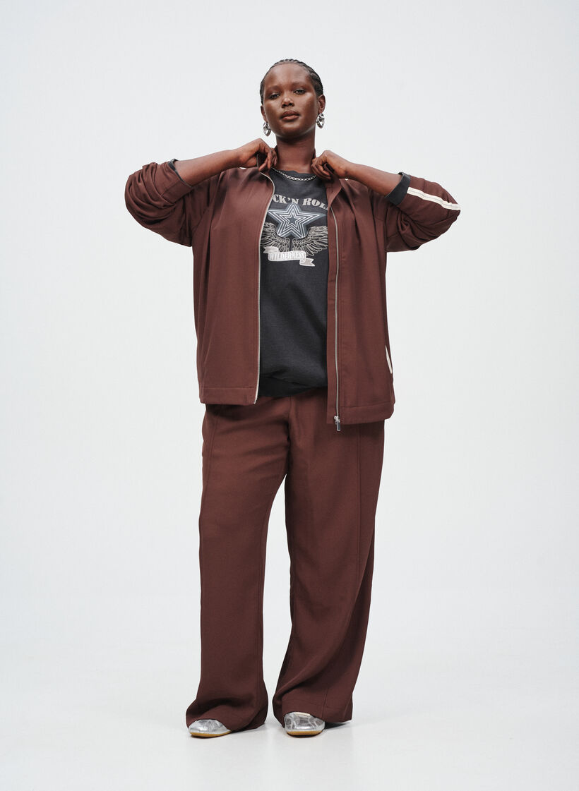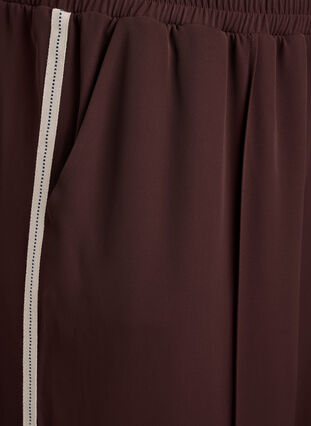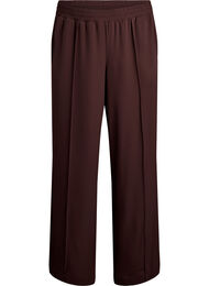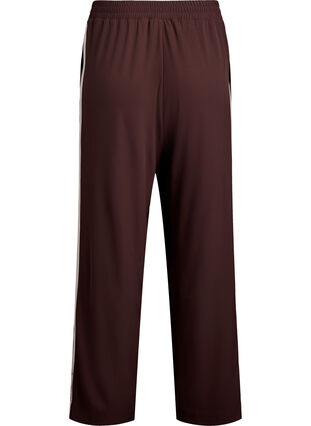 Sportieve broek van een licht en rekbaar materiaal met een hoge taille en rechte pijpen. De broek heeft een relaxte pasvorm met een elastische tailleband, zijzakken en decoratieve strepen langs de pijpen voor een sportieve look.