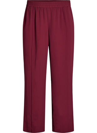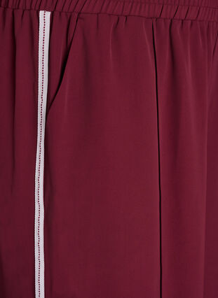 Sportieve broek van een licht en rekbaar materiaal met een hoge taille en rechte pijpen. De broek heeft een relaxte pasvorm met een elastische tailleband, zijzakken en decoratieve strepen langs de pijpen voor een sportieve look.