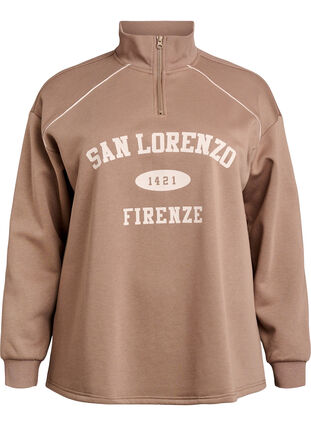 Casual sweatshirt met een sportieve college-look, gemaakt van een zachte jersey kwaliteit met een geborstelde binnenkant. De stijl heeft een losse en comfortabele pasvorm met een hoge kraag en korte ritssluiting, lange mouwen met geribde boorden en contraststiksels langs de schouders. De college-geïnspireerde print op de voorkant met de tekst "San Lorenzo - 1421 - Firenze" en het contrastkleurige stiksel benadrukken de sportieve en ontspannen stijl.