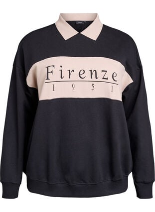 Sweatshirt met kraag en contrastprint van biologisch katoen