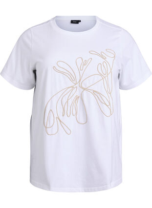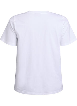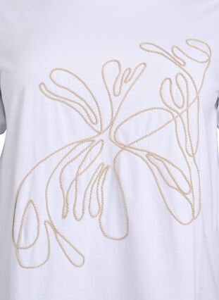 T-shirt van een zachte en comfortabele kwaliteit, gemaakt van 100% biologisch katoen. Het model heeft korte mouwen, een ronde hals en een reguliere pasvorm. Aan de voorkant is de T-shirt versierd met een artistiek aangebracht trekkoorddetail, wat een elegante en gestructureerde uitstraling geeft.