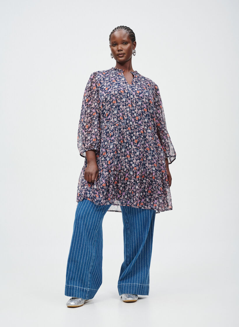 - Tunic met bloemenprint en glitterdraden