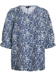 Tuniek met een V-hals en 3/4 mouwen met een rucheszoom. De tuniek is gemaakt van een prachtige viscose kwaliteit en heeft een normale pasvorm met een lichte A-lijn.