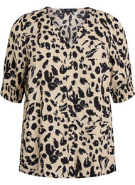 Shirtblouse met een V-hals, knoopsluiting, ellebooglange mouwen met brede gesmokte manchetten en een reguliere pasvorm. Deze shirtblouse bevat 51% LENZING™ ECOVERO™ Viscose vezels, die bijdragen aan natuurlijke zachtheid en soepelheid.