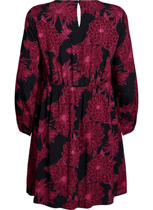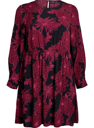 Viscose Jurk met een mooie all-over print en rond hals met een sleutelgat sluiting aan de hals. De jurk heeft lange mouw met manchetten en een verzinkt taille die een vrouwelijk stofje maakt en het comfort garandeert. Deze jurk bevat 51 % LENZING™ ECOVERO™ Viscose-fibers die natuurlijke zachtheid en drapeer toevoegen.