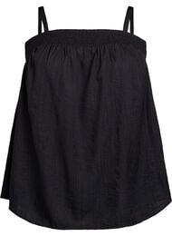 Eenvoudige en vrouwelijke top met smalle, verstelbare bandjes, een breed paneel van smokwerk over de borst en een losse A-lijn pasvorm die comfortabel valt. Deze top bevat 85% LENZING™ ECOVERO™ Viscose vezels, die natuurlijke zachtheid en valling ondersteunen.