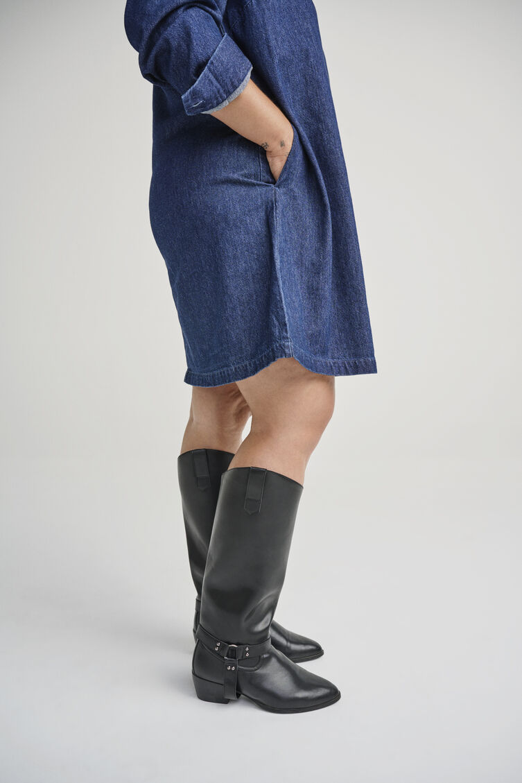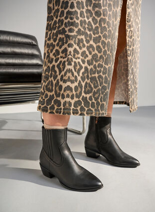 Lange wijde pasvorm laars met een afneembare schacht, gemakkelijk aan te passen voor verschillende looks – van kniehoog tot elegante enkellaarzen. De laars heeft een tijdloos ontwerp met elastische panelen aan de buitenkant die zorgen voor een goede pasvorm en flexibiliteit, terwijl een ritssluiting aan de binnenkant het makkelijk maakt om aan en uit te trekken. De afneembare schacht heeft extra breedte en kan eenvoudig worden losgemaakt en vastgemaakt met een gesp en metalen ring, zodat de schacht stevig op zijn plaats blijft.