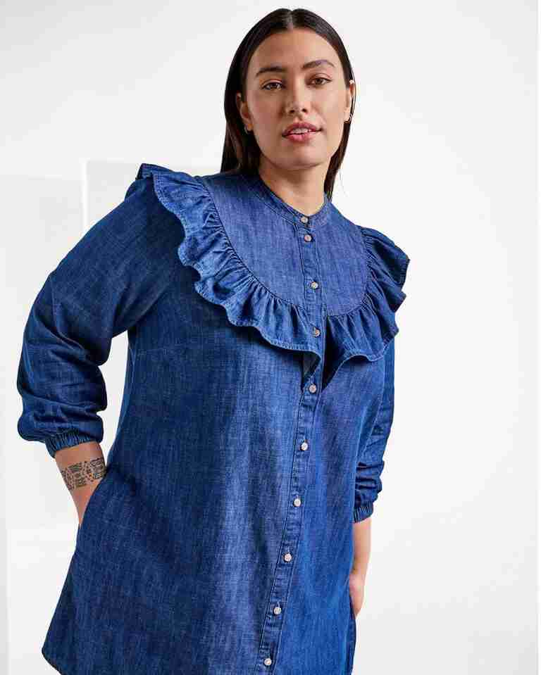 Maar denim kan ook heel zacht uitpakken. Zowel qua uiterlijk als materiaal. Denim stijlen in Tencel™, een lyocell vezel, zijn zowel zacht als vallen mooi op het lichaam. Daarom is het perfect voor bij jurken en overhemden.